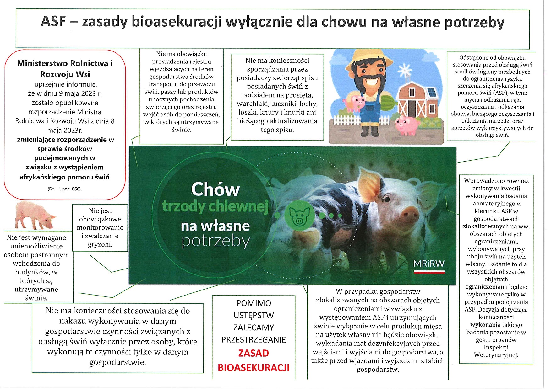 Powiatowy Lekarz Weterynarii przypomina o zasadach bioasekuracji dotyczących wyłącznie chowu na własne potrzeby: